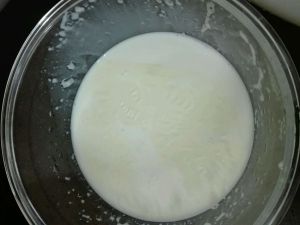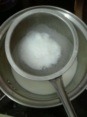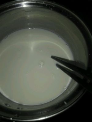 白糖放入牛奶中,搅拌至无颗粒状。