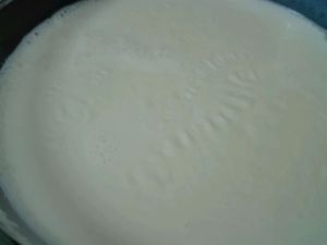 煮好的奶倒入碗中,冷却后表面结出一层奶皮