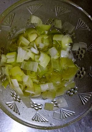 把葱切成小碎末,把油烧热,趁热浇在葱末里。这样葱的香味就出来了,然后加入五香粉,盐,鸡精等调料拌匀。