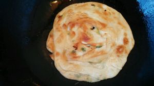 锅内倒少许油,饼煎成两面金黄色熟透即可