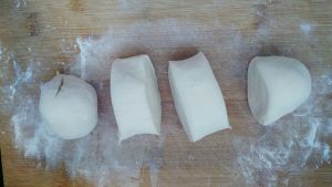 在面皮上切一刀。这一刀就像我们学的圆的半径。
