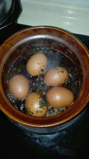 放茶叶,等茶叶泡开,料水晾凉后加酱油,盐,糖再放入生鸡蛋。