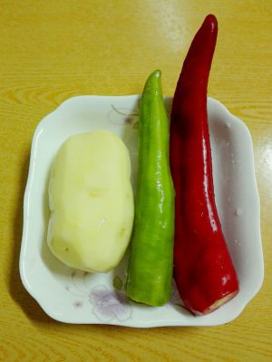 热锅凉油,用辣椒呛锅,倒入土豆丝翻炒,快熟时加入盐和醋,出锅