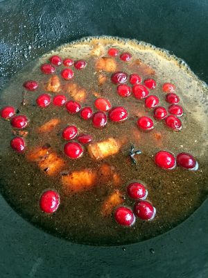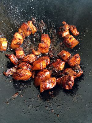 锅中放入少许食用油,待油温加热时放入冰糖,(火不要太大,不然糖容易熬焦,也可以放白糖)待糖熬成棕色即可,