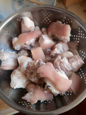 家猪肉带皮,一起切块