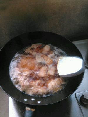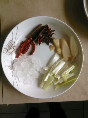放入剩下的部分姜片、葱白、过水洗净的山楂干、山楂干,改为小火盖锅盖焖1个小时左右。最后开盖调入盐、鸡精、冰糖,大火收汁儿即可