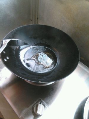 冰糖炒化后放入姜片和干辣椒开大火爆香。
