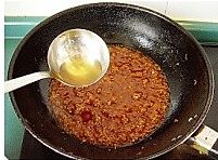 倒入调好的酱汁熬煮至汤汁粘稠。