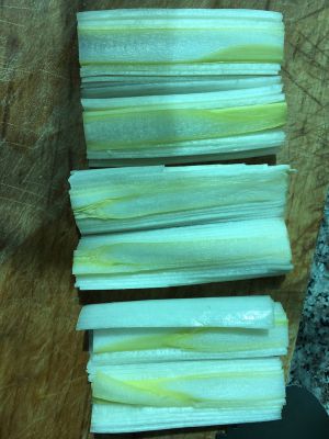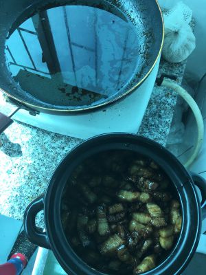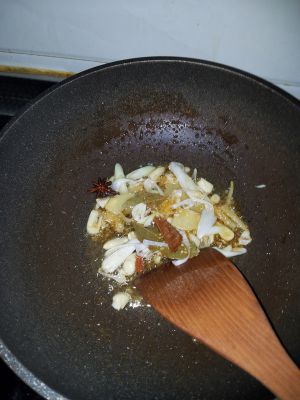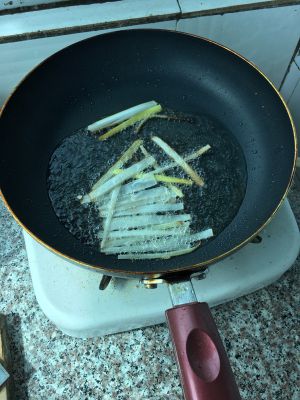 切丝的大葱放入爆香,香味全出来后可以把葱丝捞出不用。