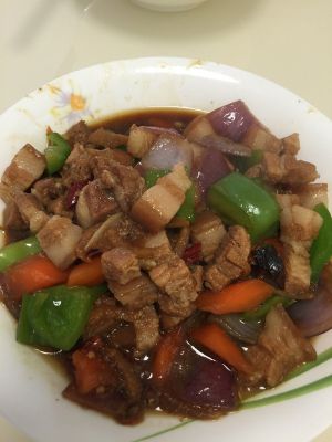 肉煮半小时,水快煮完的时候加配菜炒一会儿即可。猪肉时加生抽、老抽、盐。