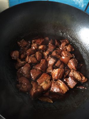 小火炒下砂糖,微微变色。把高压锅里的肉倒进平底锅里。大火收汁。最后出锅加一点点蜂蜜。颜色特别漂亮会。