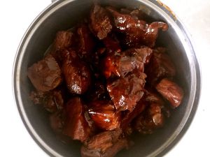 看,将近一个半小时烧好的肉,是不是看着就很想吃阿!