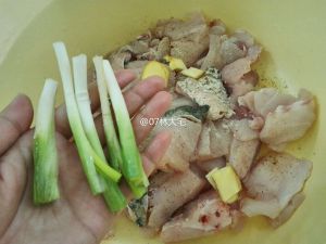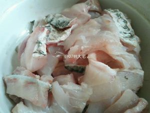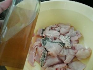 然后,用手轻轻将鱼片拌匀.腌制30分钟左右.