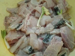 活草鱼一条,杀好洗净,鱼肉切片,鱼骨剁段。我是买的时候让人剁好的,回来多洗几遍就可以了。
