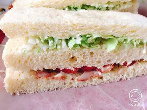 吐司切片,开始摆盘啦!tips:用了自制的吐司,想自己做的话搜索中种法吐司面包,这样做出来的隔夜也不会干