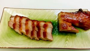 香喷喷的蜜汁叉烧肉出炉了,切片浇汁便可上桌享用了。