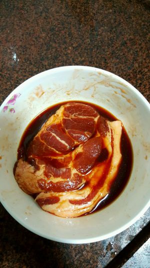先用李锦记叉烧酱和适量的生抽、老抽腌制四个小时,越久越入味。