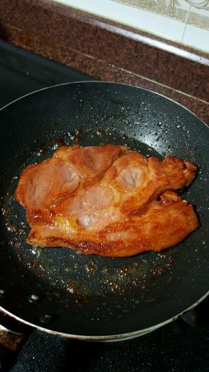 用平底锅小火将梅头肉两边煎得有少许的焦。