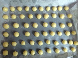 接下来就是把这面团搓成一颗颗的小丸子 大小最好一致 呵呵