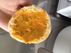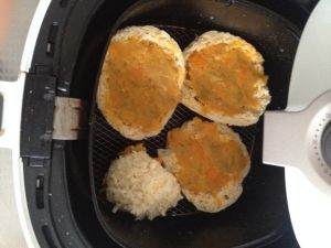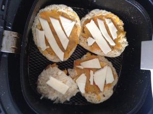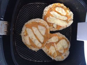 我放入了空气炸里 没有的话烤箱什么的都可 (挖出的馒头瓤两个一合就是个小汉堡 哈哈哈