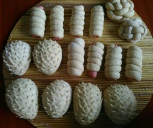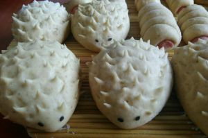 用黑芝麻沾水,装饰成刺猬眼睛,造型好的馒头醒15分钟,水烧热上锅蒸12分钟(馒头个子小),关火焖3分钟