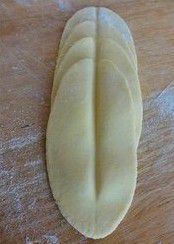 将面团撮成长条,切成饺子皮块大小,擀成饺子皮。就是和做饺子皮差不多的。取6片一字排开,然后卷起来,中间切开,然后整理一下花瓣。