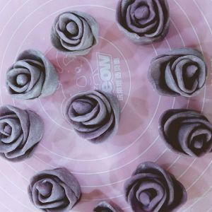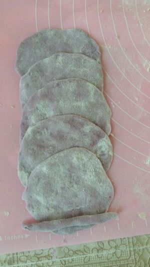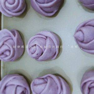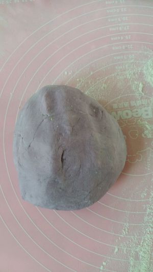 紫薯去皮蒸熟压成泥,趁热加入白糖,晾凉备用,把面粉、紫薯泥、干酵母、适量水,揉成光滑的面团。放在温暖处发酵至两倍大。