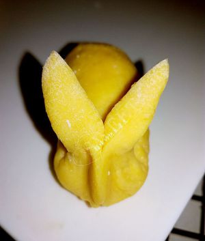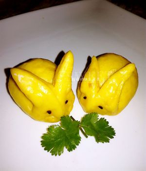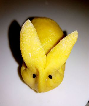 在左右两侧各粘上一粒黑芝麻作为兔子的眼睛。