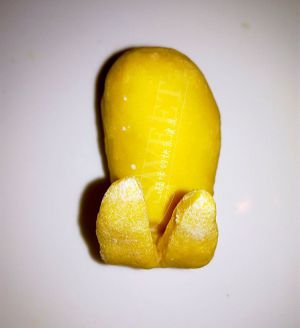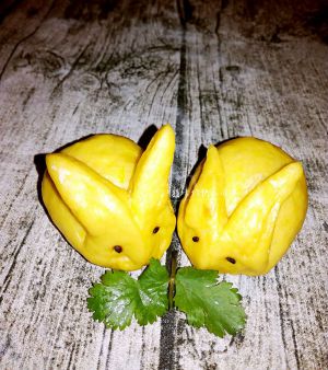 用大拇指和食指轻轻的在兔子耳朵下面捏一下,形成兔子的脸部。