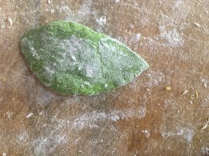 取一个松弛好的面团,搓成如图所示一头尖一头圆的形状。
