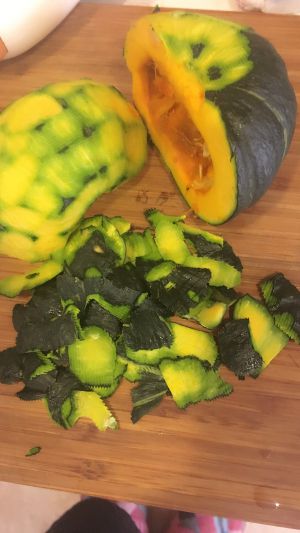 南瓜洗净后切片,上锅蒸熟。取150克南瓜,用勺子压烂成泥。