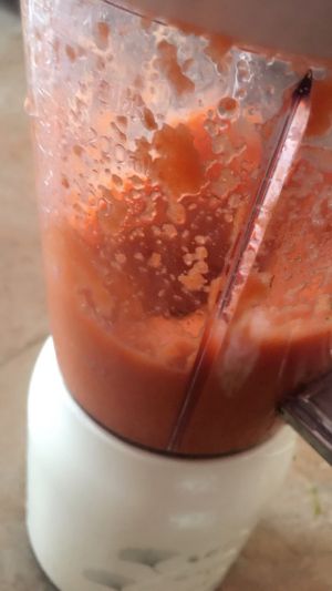 把剩余的蔬菜都打成汁备用,茄子皮和葡萄皮打成汁