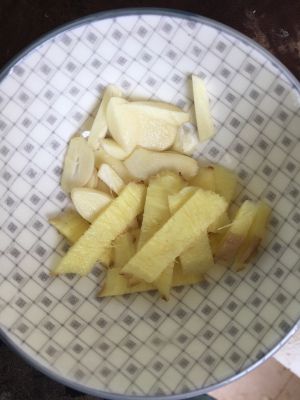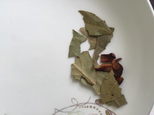 再将排骨倒入冷水锅中,同时加入姜,葱白,桂皮,香叶,大料,大火煮沸,转小火煮40分钟。排骨肉炖烂出锅