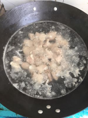 炒至冰糖变成浅褐色,记得要搅拌哦,不然冰糖就结块变硬了