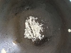 在炒锅里加植物油适量,加蒜,姜,花椒,炒半分钟,倒入焯过水的排骨加少量食盐继续炒几分钟