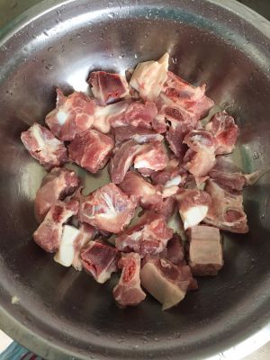锅里放凉水烧的快要开的时候,把排骨放进去,煮到看到有血沫就可以把排骨捞出来,再用清水洗一遍,放着沥干备用