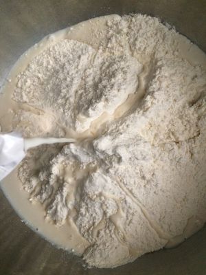 加入面粉酵母粉紫薯泥加入牛奶活面
