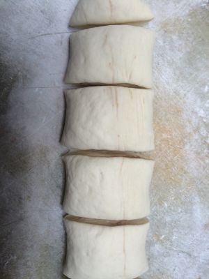 发酵好的面团再进行揉匀排气,分成等分面团。