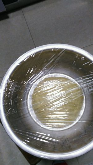 用保鲜膜把面盆,包起来,放在暖和的环境。我是用旧衣服包起来,放进被窝的
