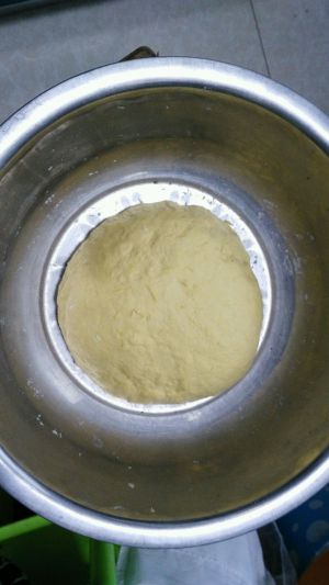 发面。把面粉放进面盆里,放入南瓜泥,和面。用温30度左右牛奶和酵母5克,放入面。用温牛奶一点和糖。我还放了一点点无铝改良剂(也就是泡打粉,也可不放!)放入面。用劲和面,(这个过程很累哒