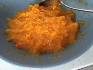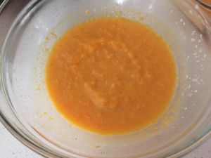 南瓜去皮去子切小块蒸熟,用勺子压成泥。