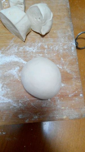 先发面,把面粉和酵母放在盆里,倒入适量的温水揉成面团