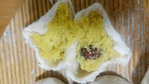 再接着是黄米面 把适量的白糖倒入黄米面并拌匀 接着用开水烫面(只烫一半的量就好),先把过烫过的面揉好。将发酵粉倒入适量温水中,搅拌使其混合后倒入另一半面粉中揉好后把两块面合成一块面揉啊揉啊揉~~揉好后发酵