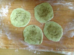 发好的面团揉好,排气,做成等大的小剂子,擀开成圆片状,涂少许食用油,撒上椒盐