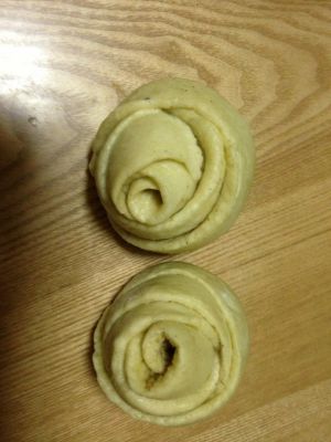 沾一点水放在合适的位置,女儿第一次做有点手忙脚乱,忘了拍沾的过程, 猪耳朵做了两种。