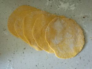 蒸熟的南瓜加面粉揉成团,南瓜的水份不同量不绝对。大揉,醒十分钟,再揉,分剂子擀皮。