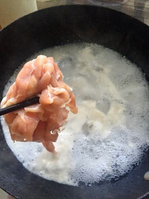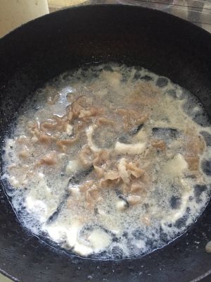 鱼片煎至半熟,加水烧开至汤汁变白放入羊肉