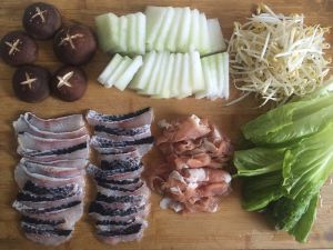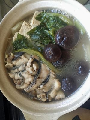 大火煮个十分钟先,转小火的时候一并把白菜放入锅子里一起煮,大约小火煮个二十分钟再加入粉丝,继续煮个十来分钟熟透之后,加入切好的青红椒块,略微煮个三五分钟之后再加入香菜段和葱段,白胡椒粉和适量鱼露,起锅了!