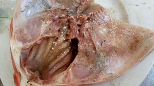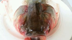 花鲢鱼头三斤左右,将下部用快刀划开