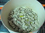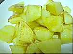 烧牛腩的同时,土豆去皮洗净,切成与牛腩大小相当的块,入油锅中炒至表面微焦